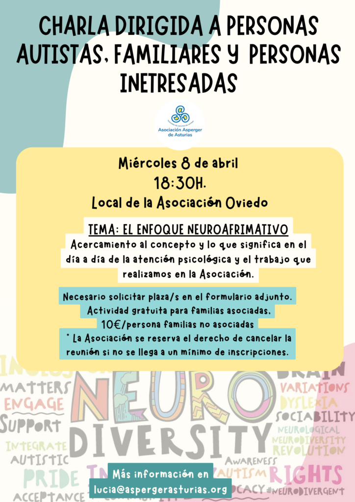 19/03/2026 Charla dirigida a personas autistas, familiares y personas interesadas.